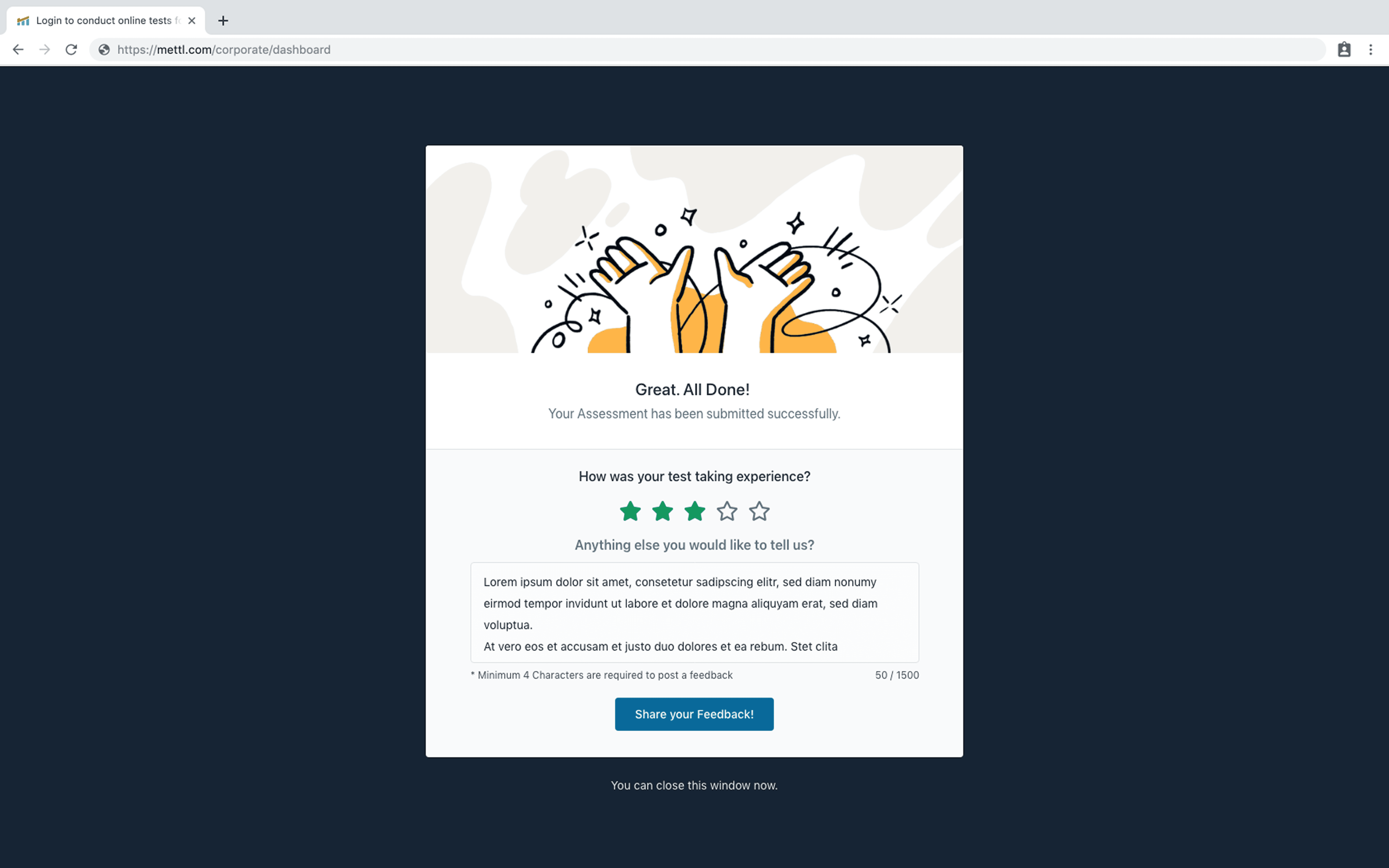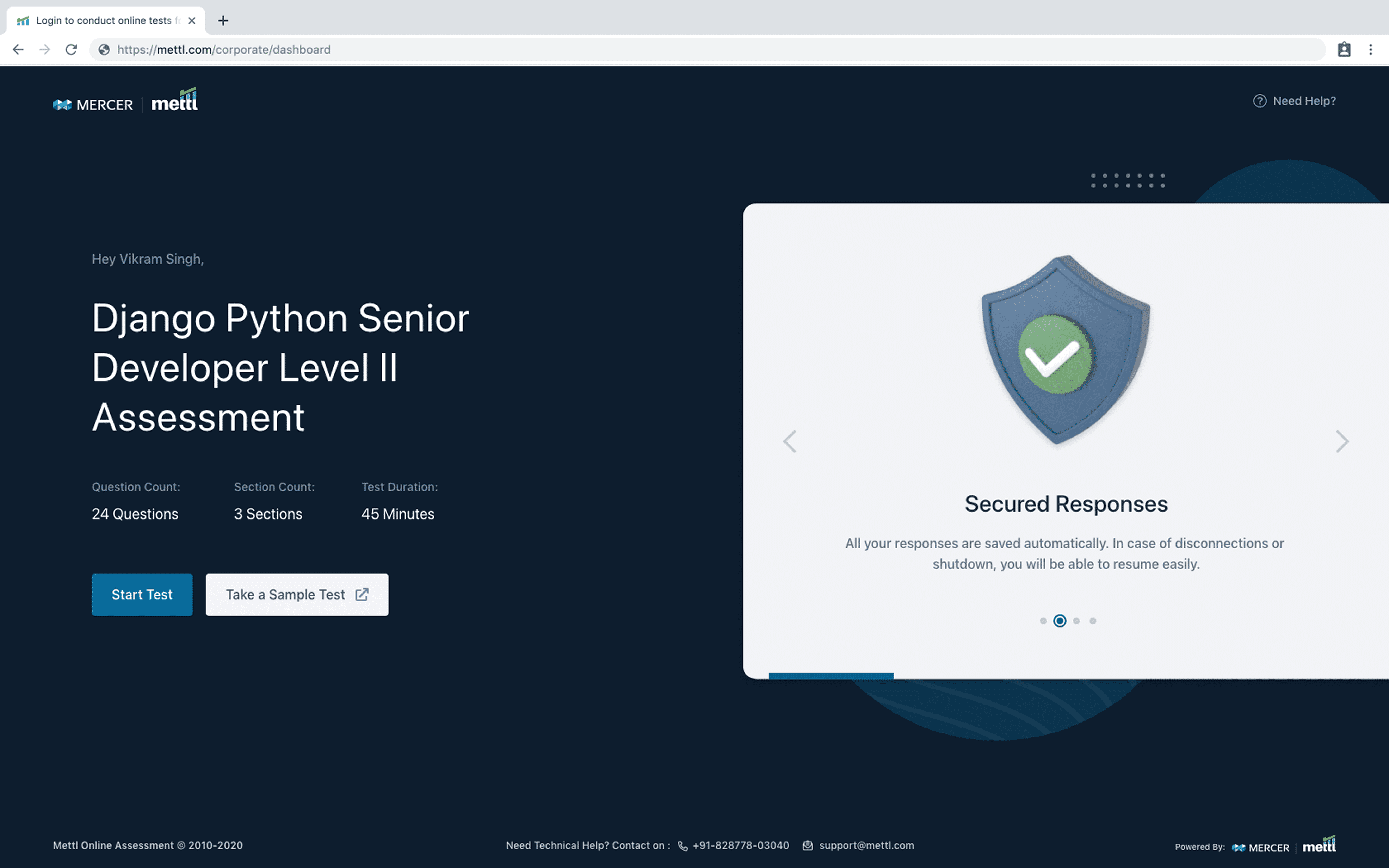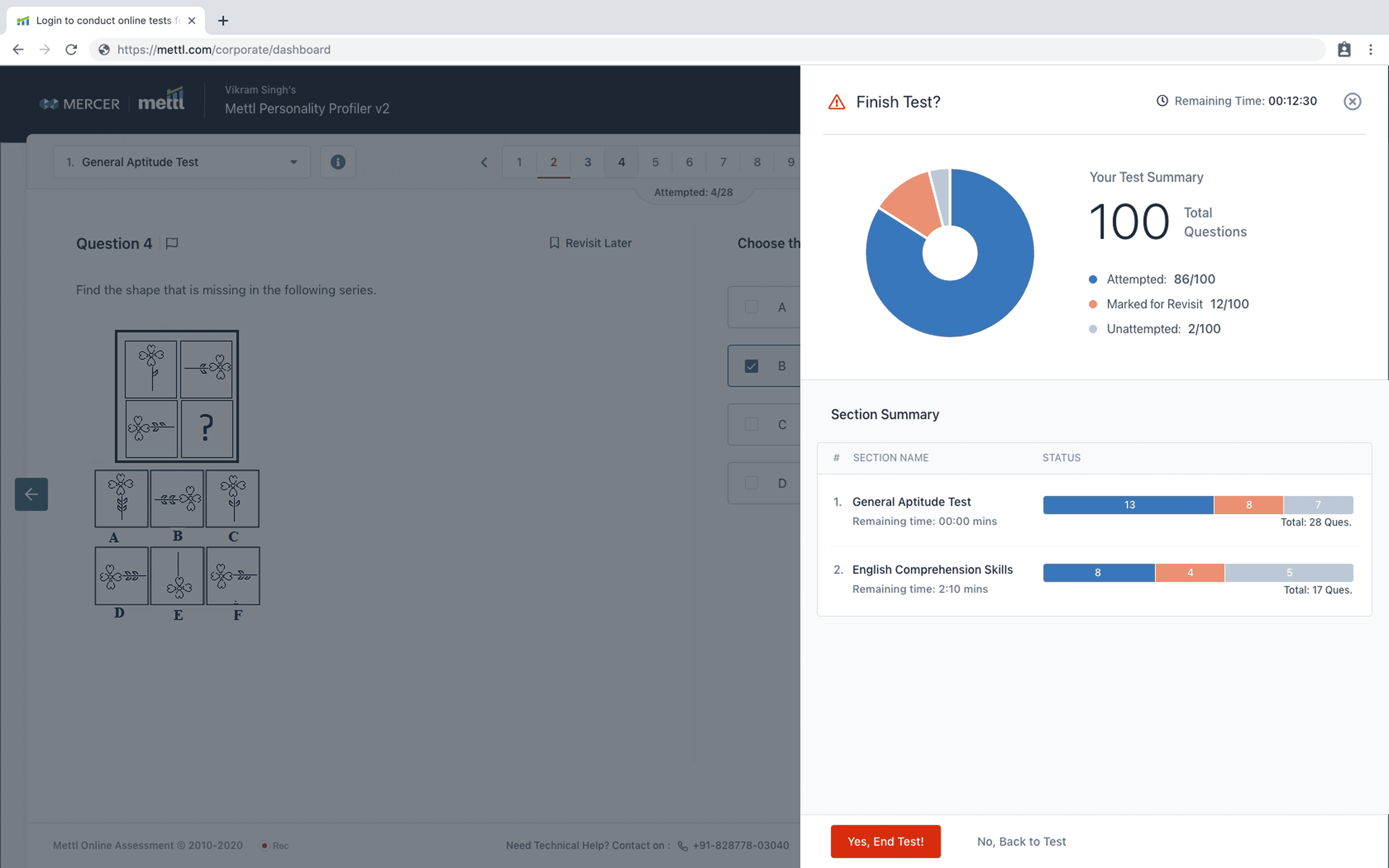 • The process concludes with the candidate formally ending the test and securely submitting the recorded response to the Mettl server.